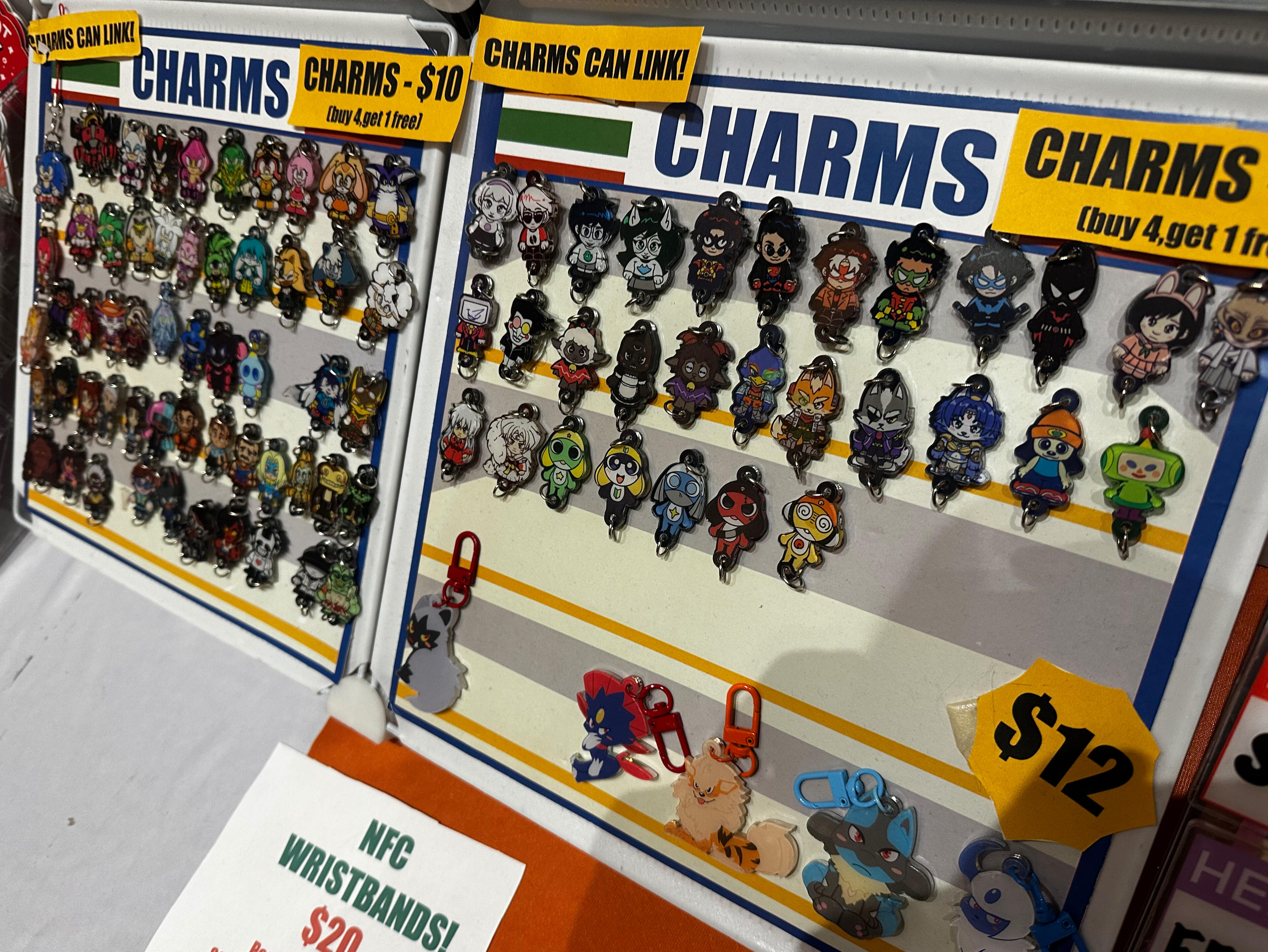 CHARMS, STICKERS, SHIRTS, TOTE BAGS,COMMISSIONS, AND ENAMEL PINS TOO!